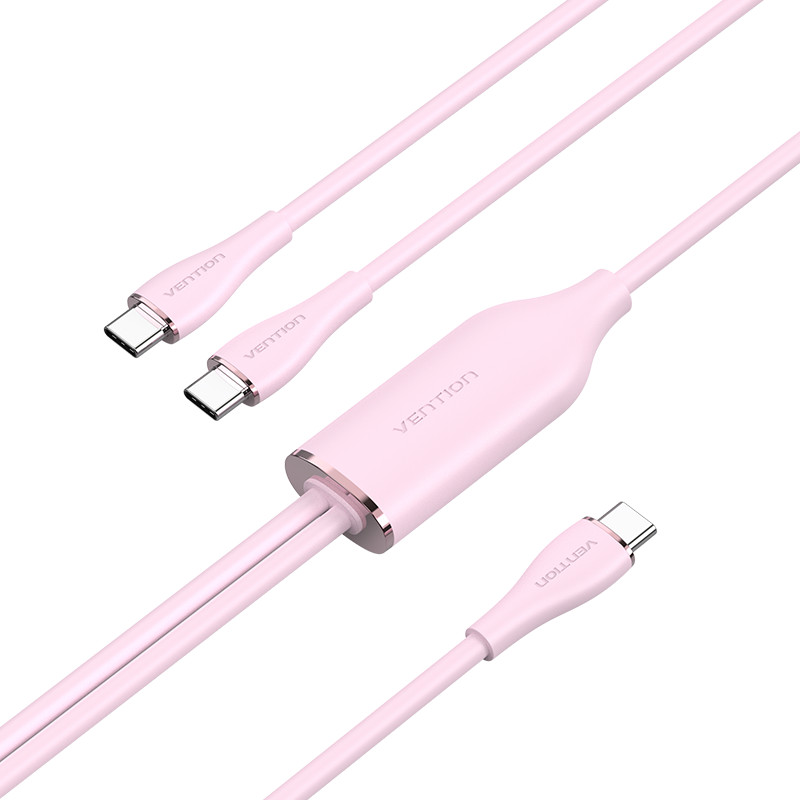 Vention USB-C 2.0/M -> 2*USB-C/M, (5A,szilikon,pink), 1,5m, kábel