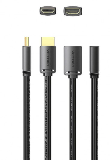 Vention HDMI/M -> HDMI/F (4K, HD, PVC, fekete), 0,5m, kábel