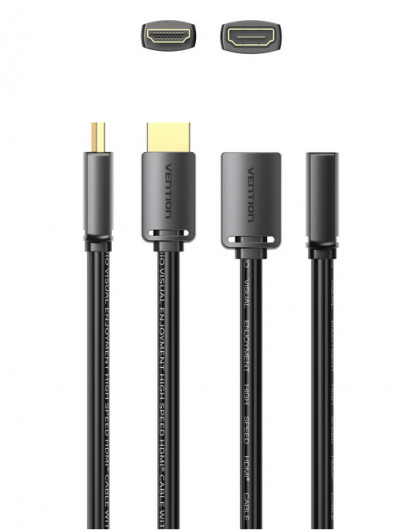 Vention HDMI/M -> HDMI/F (4K, HD, PVC, fekete), 5m, kábel