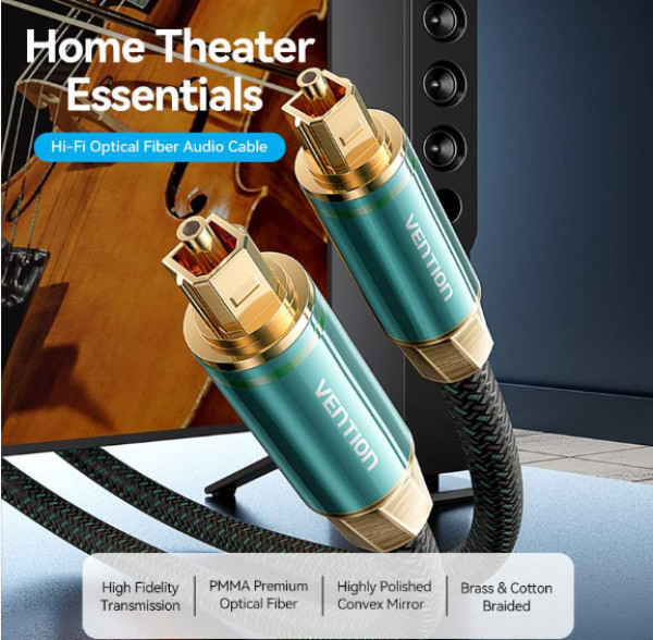 Vention Toslink optikai, (audio,réz, szövet, zöld), 1,5m, kábel