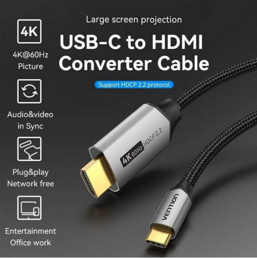 Vention USB-C/M ->HDMI/M (4K, alu), 1m, kábel