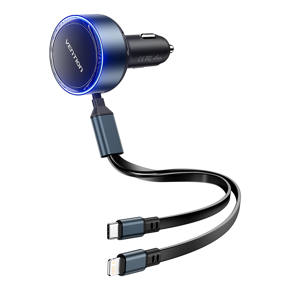 Vention USB-C*2+Lightning (3port,30W, szivargyújtós), töltő