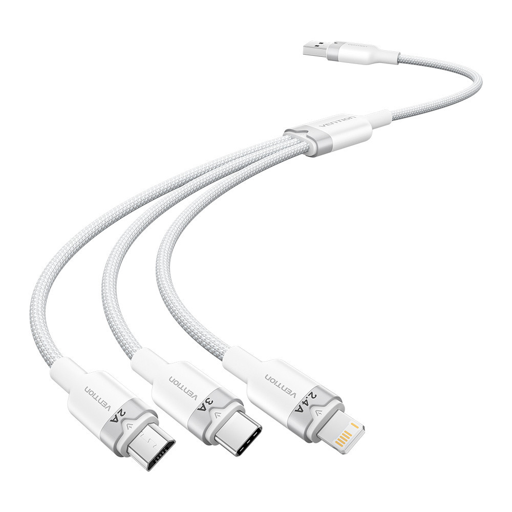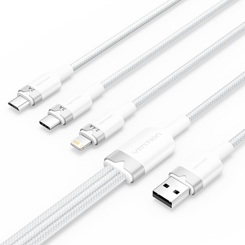 Vention USB-A 2.0/M -> USB-C/Lightning/Micro USB-B, 1,5m,(fehér,3A,3in1), kábel